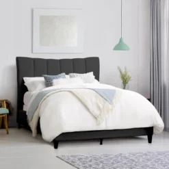 Bellevue Wide Rectangular Panel Fabric Bed And Frame – CorLiving