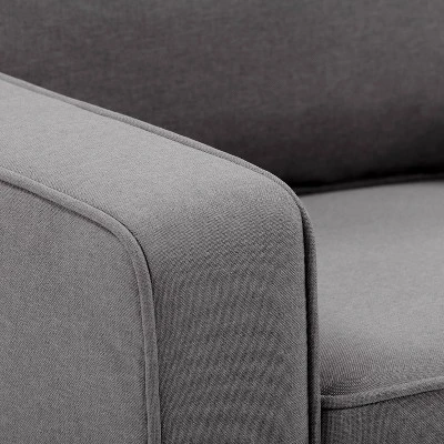 - Upholstered in durable gray linen-like polyester fabric