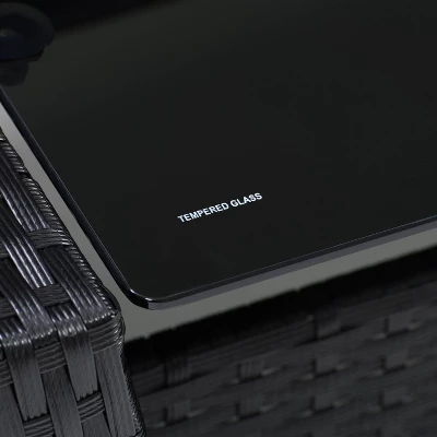 - 5mm inset clear tempered safety glass tabletop with suction grips to keep the glass in place