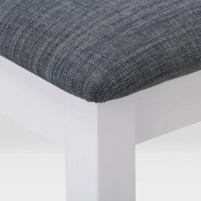 This classic white dining set fits comfortably in any space. It features a neutral two-tone white and gray finish, solid wood table top with clean lines and sturdy legs. The chairs combine comfortable padded seats with a traditional high back for support . Comfortably seating 4 this is the perfect table for any eating nook or dining room. Set includes 1 table and 4 chairs.