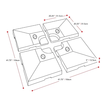 Support your deluxe patio umbrella with this heavy duty umbrella base made up of four durable, individual weights. Designed to withstand strong winds, this base supports heavy offset and articulating umbrellas with cross-bases and/or pedals such as the CorLiving PPU-400 or 500 series. Simply fill these strong weights with the easy-fill spouts place them on the base of your umbrella to keep in place. With minimal assembly required, you’ll be worry-free and enjoying your outdoor space in a matter of minutes.