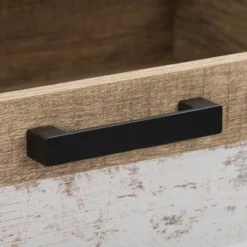 - Powder-coated metal accent drawer handles