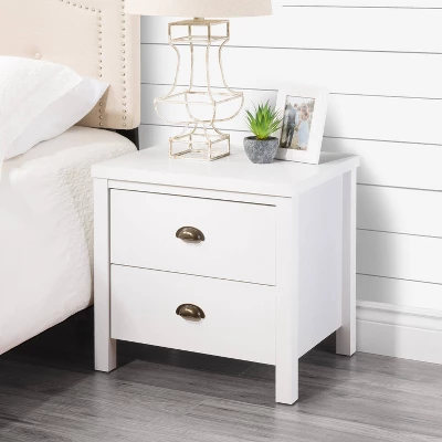Classic lines with rustic details, the Boston two-drawer nightstand is the perfect place to tuck away your belongings. A welcomed addition to any aesthetic, it showcases a clean-lined frame and a classic finish. Providing ample space for remote controls, books, and any other bedside essentials. The two drawers run smoothly on metal glides, and each one features a gunmetal cup pull handle. Add the matching dressers from this collection to complete your bedroom set.