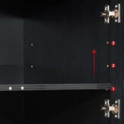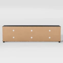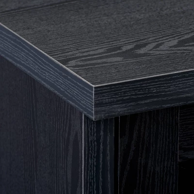 Elevate your entertaining space with this classic TV bench. A beautiful wood grain finish in a rich black, this bench is designed to accommodate all your storage needs. With enclosed shelving areas on both ends and adjustable shelves to fit any and all of your A/V equipment, gaming console and accessory heights. Sit back, relax and control all your equipment from the remote through the framed tempered safety glass doors. Keep your space tidy and organized with center open shelves and cable management openings in each storage area. A classic piece that will truly last a lifetime.