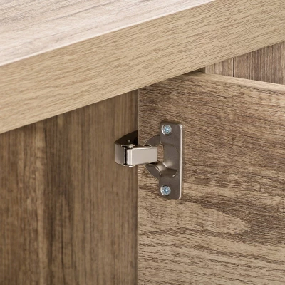 - Distressed laminate wood grain finish