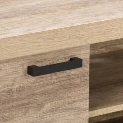 An sturdy and bold design paired with clean lines to complement any room’s décor. With shelving space for all your A/V equipment and accessories, the beautiful duotone cabinet doors with high quality powder coated aluminum handles enclose large storage space on both ends to keep it tidy and organized. Sturdy construction with adjustable center support legs, this bench the perfect design to hold TVs up to 90″. A great focal point in any living room or entertainment space.