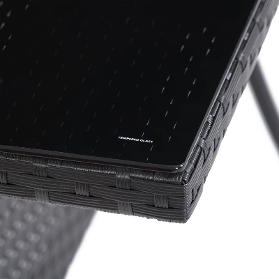 Outdoor dining has never looked so good; day or night! Sturdy and durable, its metal wrapped leg collar and its tempered glass top make this piece as stylish as it is functional. Its powder-coated steel frame resists rust and its all-weather, UV resistant resin wicker maintains a bright and fresh appearance year after year. Available as a 4 or 6 seater, it will fit your space no matter the size.