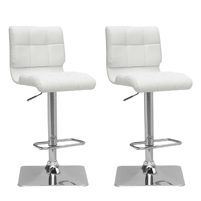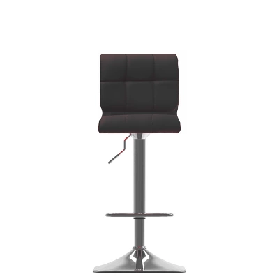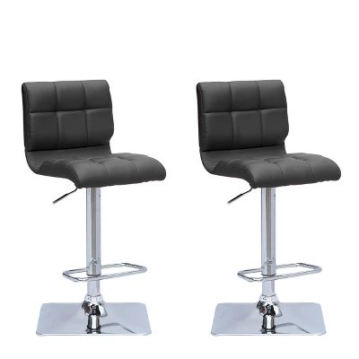Elevate your kitchen with this pair of adjustable counter height bar stools. The unique square panel design, mid backrest and metal base give it a modern yet approachable look that complements any decor. The swivel seat is generously padded for comfort, making dinners with friends and family even more enjoyable.