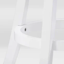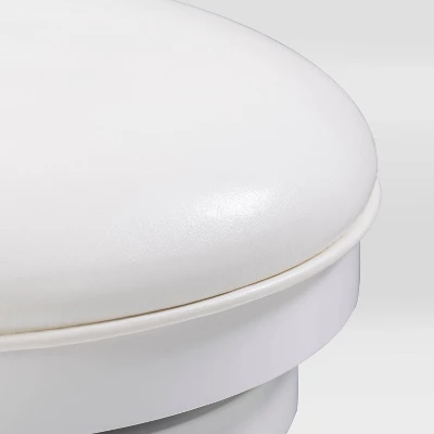 - Seat upholstered in a durable classic white faux leather