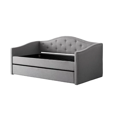 Create a cozy and versatile living space with this daybed, expertly wrapped in soft fabric. This daybed combines the tufted padded backrest with arch accents and gently sloped arms, creating a style that can elevate the decor of any home. Featuring a hidden trundle design, this daybed creates additional sleeping spots for overnight guests. Bring home this daybed to create a cozy place to lounge or sleep, making it ideal for any den, guest room or bedroom.